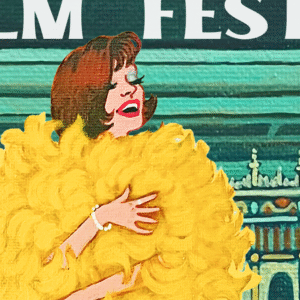 We have had the privilege of collaborating with illustrator Alexandra Hallock, the artist behind @alldrawn, on this year’s beautiful Festival Campaign. Hallock’s work focuses on movie-themed illustrations, refurbishing vintage purses as her canvas. This stunning poster is a love letter to the hand-painted Hollywood visuals of yesteryear.