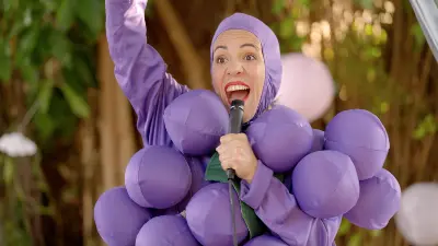 Nora has been living in NYC, following her dreams of “aspiring comedy writer,” but teaching took over, a job she’s just quit or been fired from — it’s complicated. Before she can figure out her next move, Nora finds herself back home, in Miami– Kendall, to be exact, dressed as a dancing grape, performing at children’s birthday parties with her Abuela and Tío.