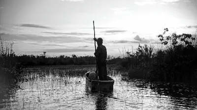 A peasant wanders the dark marshes and tangled wilderness of Cuba’s Ciénaga de Zapata, or Zapata Swamp, in search of food for his family, burdened by the inefficiency of the country’s regime and the COVID pandemic. He secretly hunts the meat of fierce crocodiles, though their capture is forbidden, as the camera follows his dangerous ordeal, one he undertakes with astonishing courage. Silence is broken only by birdsong and his movement across still waters where danger lurks. In the village, his wife and disabled son wait anxiously, unable to survive without his extraordinary sustenance. One of the most unexpected documentaries ever filmed in Cuba, set in the myth-inspiring Ciénaga de Zapata, a landscape of peril and uncertainty.